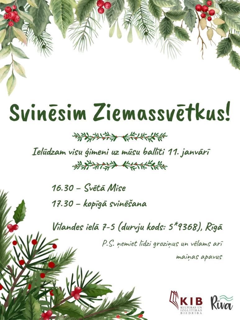 Svinēsim Ziemassvētkus laiku kopā kultūras centra “Rīva” telpās!